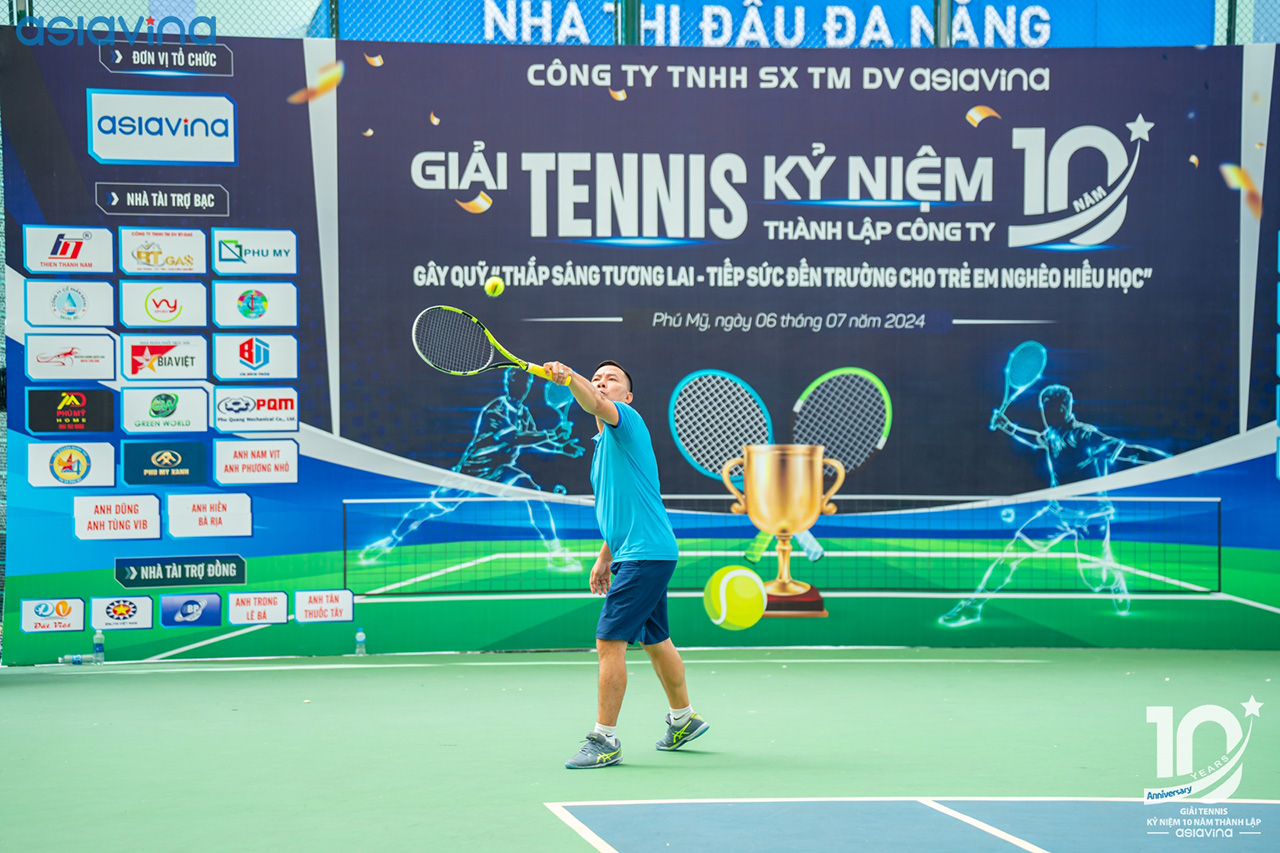 Hình ảnh thi đấu tại Giải tennis kỷ niệm 10 năm thành lập công ty Asian Vina ngày 06/7/2024. Giải đấu diễn ra nhằm chào mừng 10 năm thành lập công ty Asian Vina và gây quỹ “ thắp sáng tương lai- tiếp sức đến trường” cho trẻ em nghèo hiếu học. Thông qua giải đấu tạo nên sân chơi lành mạnh, khuyến khích phong trào rèn luyện thể dục thể thao nói chung, thi đấu giao lưu học hỏi, nâng cao trình độ và niềm đam mê đối với bộ môn Quần vợt nói riêng để tạo ra những giá trị trong cuộc sống.